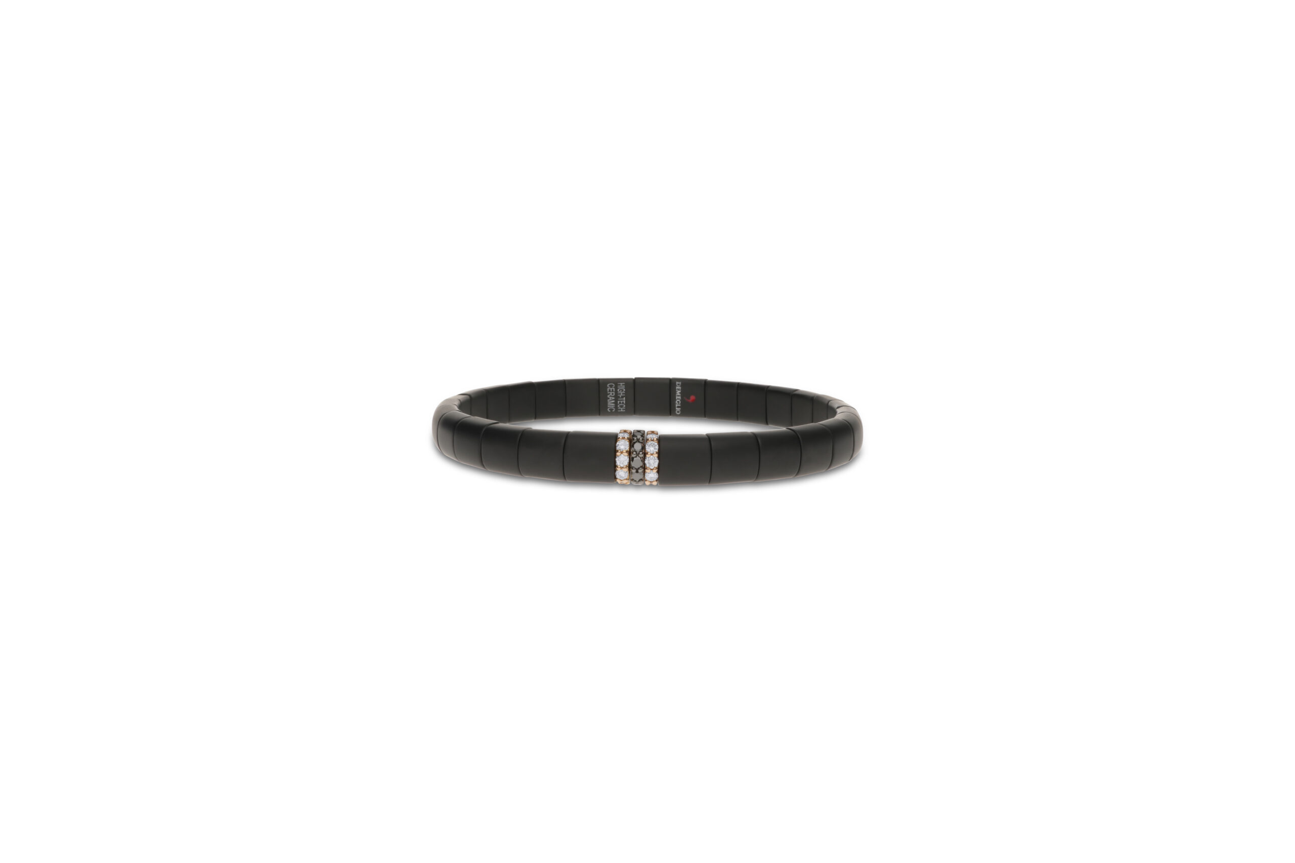 Flexibles Armband aus Keramik mit 750/- Weißgold und schwarzen Brillanten sowie 750/-Roségold mit naturbraunen Brillanten