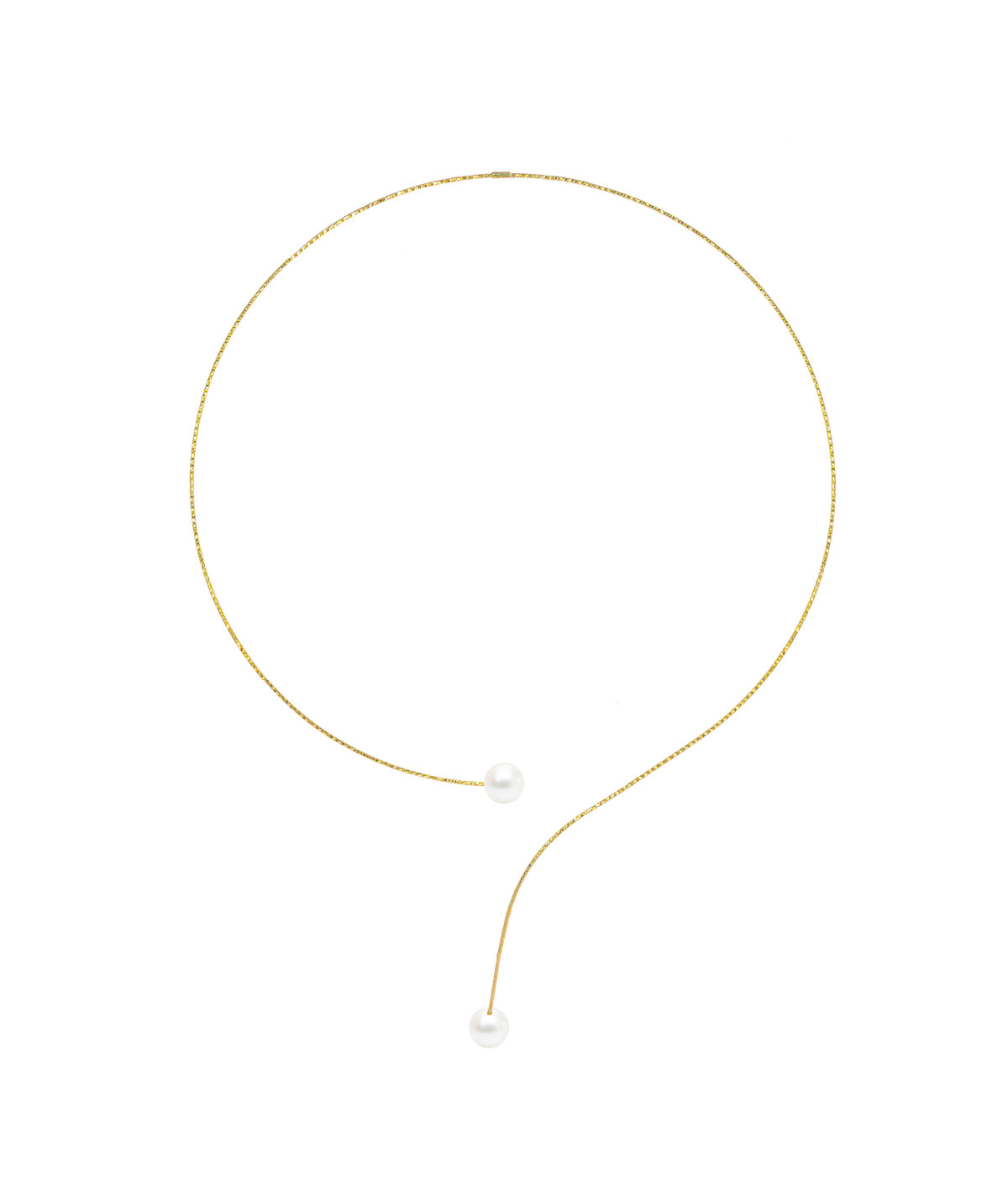 Flexibles Collier aus 750/- Gelbgold mit Süßwasser-Zuchtperlen