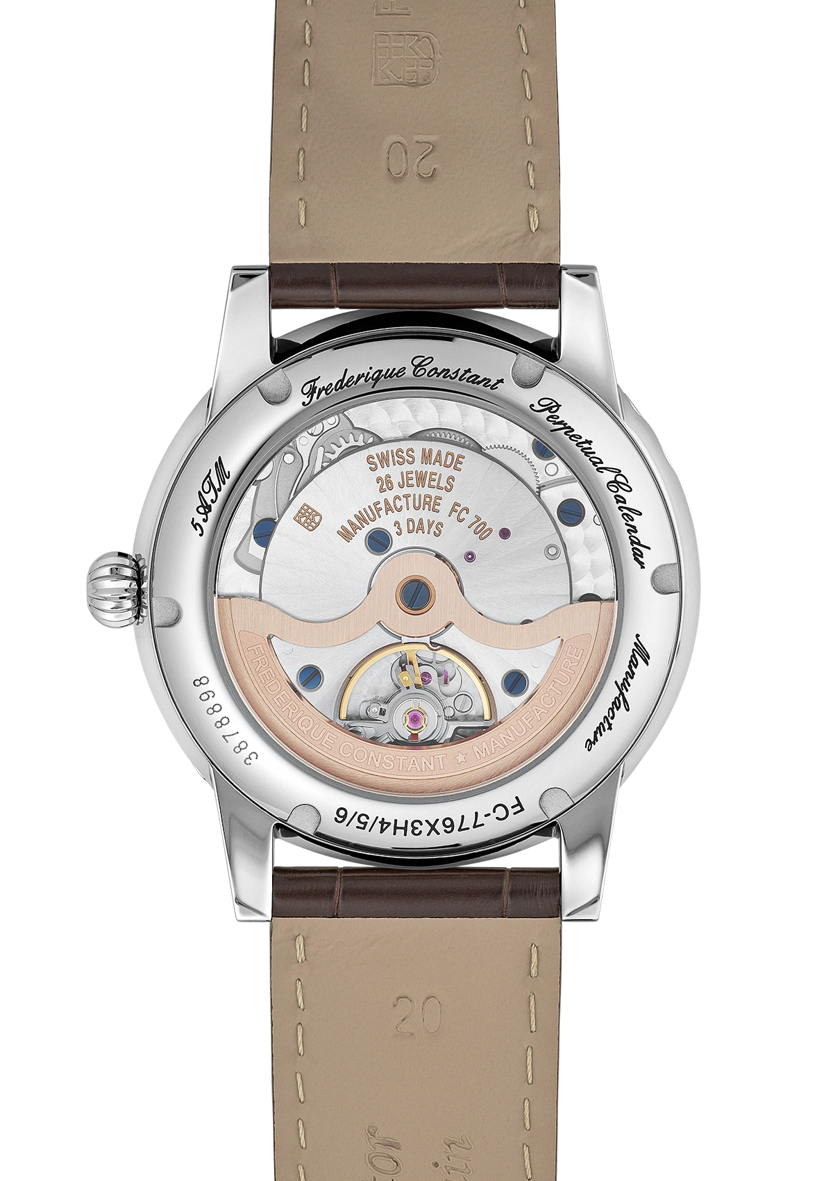 Die frederique constant classic perpetual calendar manufacture präsentiert sich in einem neuen 40-mm-gehäuse und wird vom hauseigenen manufakturkaliber fc-776 angetrieben, dem 34. intern entwickelten werk der marke, nun mit einer gangreserve von drei tagen. dieses modell verbindet hochwertige verarbeitung, sorgfältige finissierung und technische innovationen – ein zeitloses meisterwerk der uhrmacherkunst.