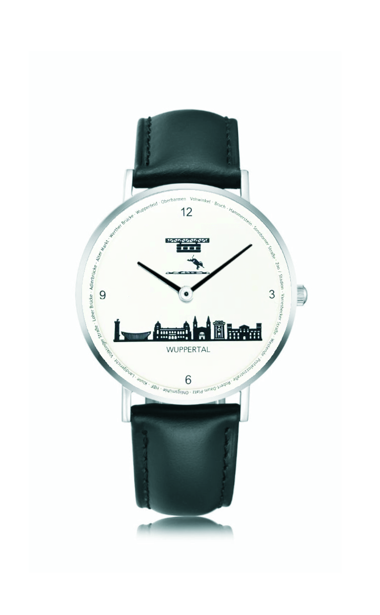 Was in dieser Kollektion bisher gefehlt hat, war eine passende Stadtuhr. Diese Lücke schließt Juwelier Baeumer & Co. mit der Lancierung der neuen Stadtuhr. In Verbindung mit unserem Partner Uhrgebiet entstand so eine außergewönliche Uhr, die Wuppertaler Wahrzeichen wie die Schwebebahn, den Tuffisprung, unsere historische Stadthalle, das Zoogebäude, die Schwimmoper, den Elisenturm, den Toelleturm und die Laurentiuskirche abbildet.